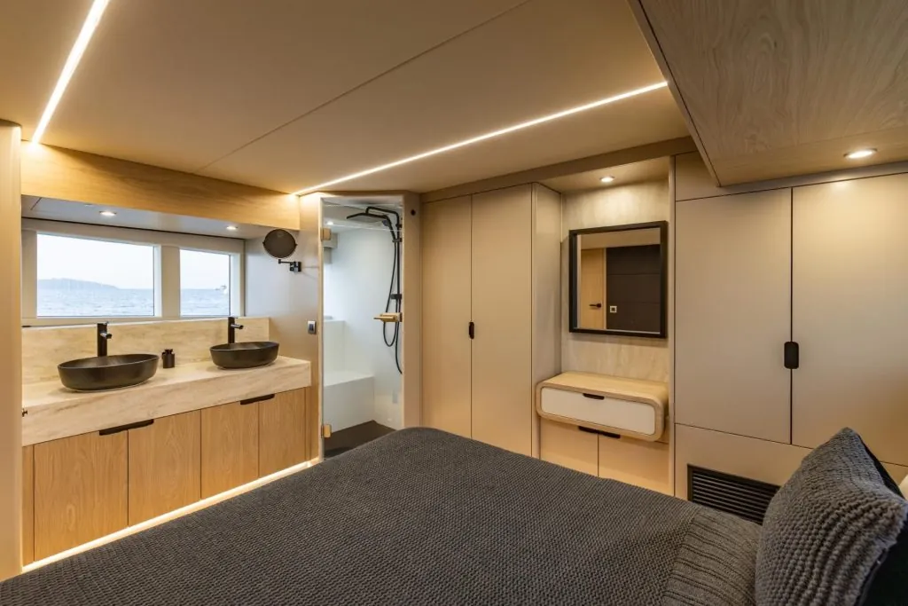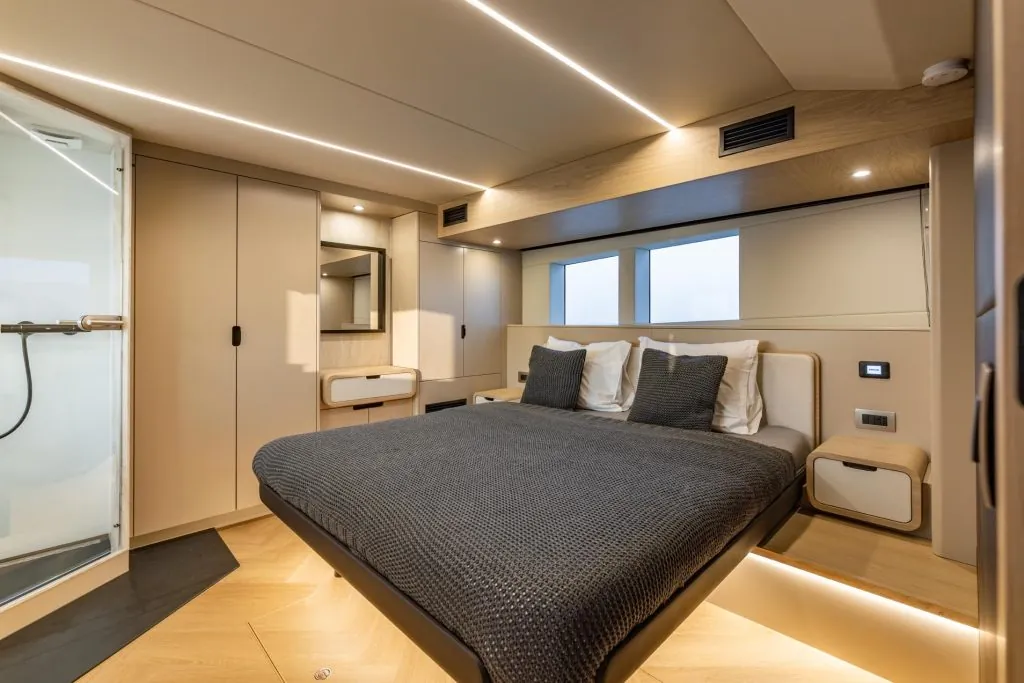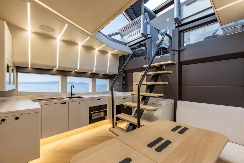 The Bronson 65 takes yachting to an entirely new level. The lines are elegant and powerful, the performance is unmatched, and the comfort on board rivals that of a superyacht. Thanks to the innovative lift system, we can open or close the vessel depending on the weather, always cruising in ideal conditions.
