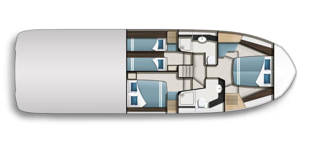 A dynamic silhouette combines with sporty accents throughout to create a boat that looks like it is moving even when it is standing still. As for exterior and interior living spaces, practicality and versatility were of utmost importance during the design phase of this model. The Galeon 440 FLY can be configured for either two or three cabin layout and comes available with a variety of luxury finishes and a comprehensive list of additional features that allow for maximum customization.