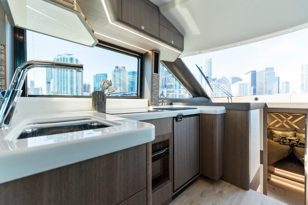 Galeon has leveraged all of its storied boatbuilding experience to create the 440 FLY, a medium-sized motoryacht packed with intelligent innovations and a fresh approach to onboard space distribution. The yacht has a sleek exterior and unmistakable Galeon DNA in regards to this boat’s aesthetic appeal.
