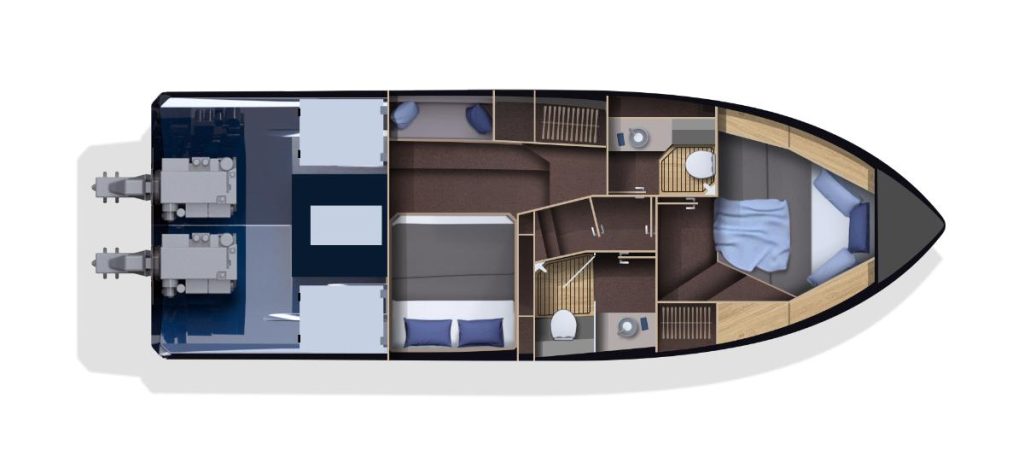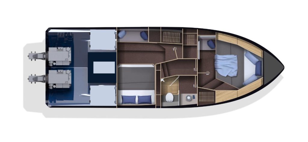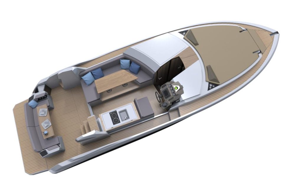 A pesar de lo compacto que es, este yate ofrece un interior sorprendentemente espacioso, un flybridge completamente funcional y una cubierta principal inteligentemente distribuida con ventanales panorámicos. Cada metro cuadrado está optimizado para combinar elegancia, practicidad y el placer de vivir el mar.