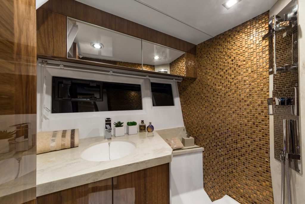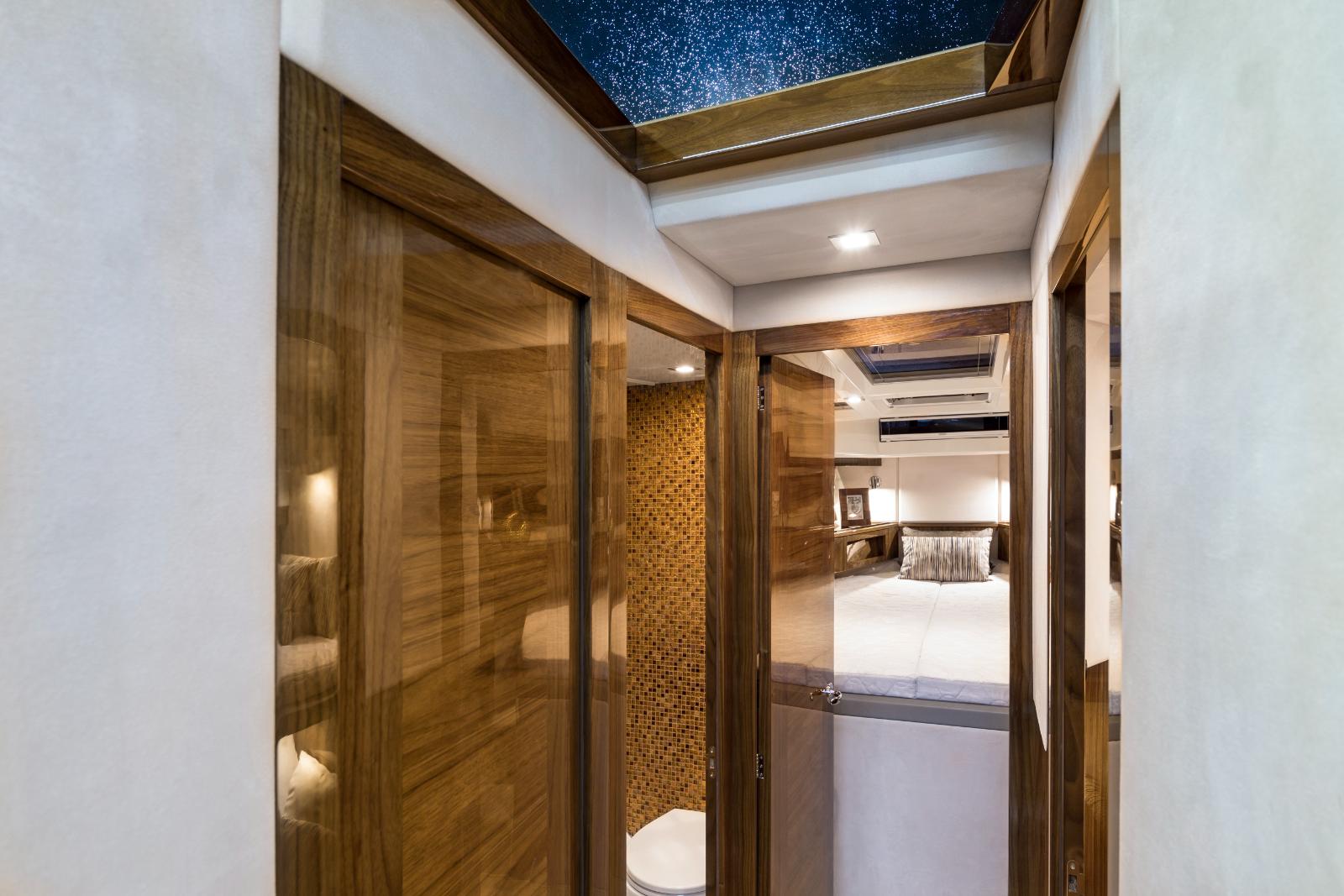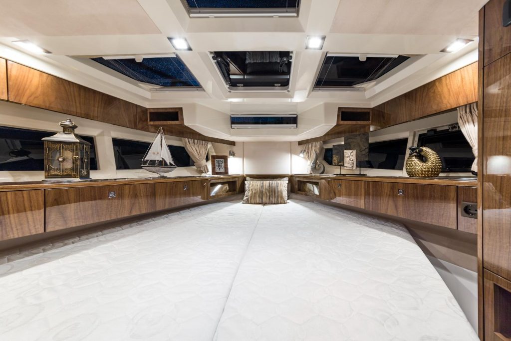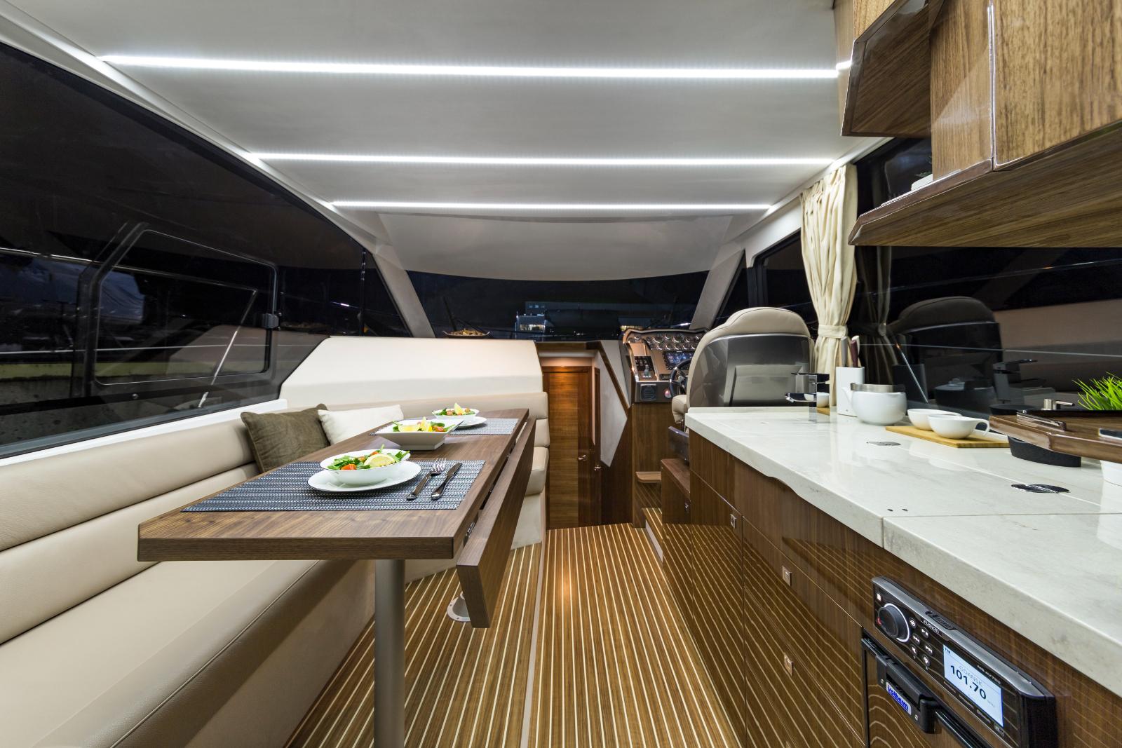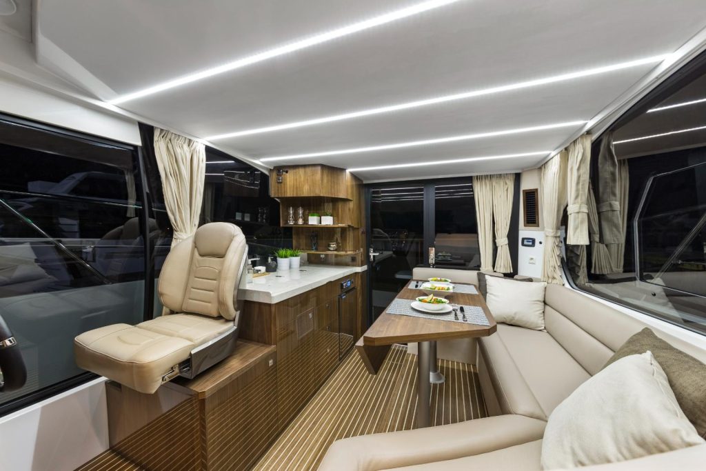A pesar de lo compacto que es, este yate ofrece un interior sorprendentemente espacioso, un flybridge completamente funcional y una cubierta principal inteligentemente distribuida con ventanales panorámicos. Cada metro cuadrado está optimizado para combinar elegancia, practicidad y el placer de vivir el mar.