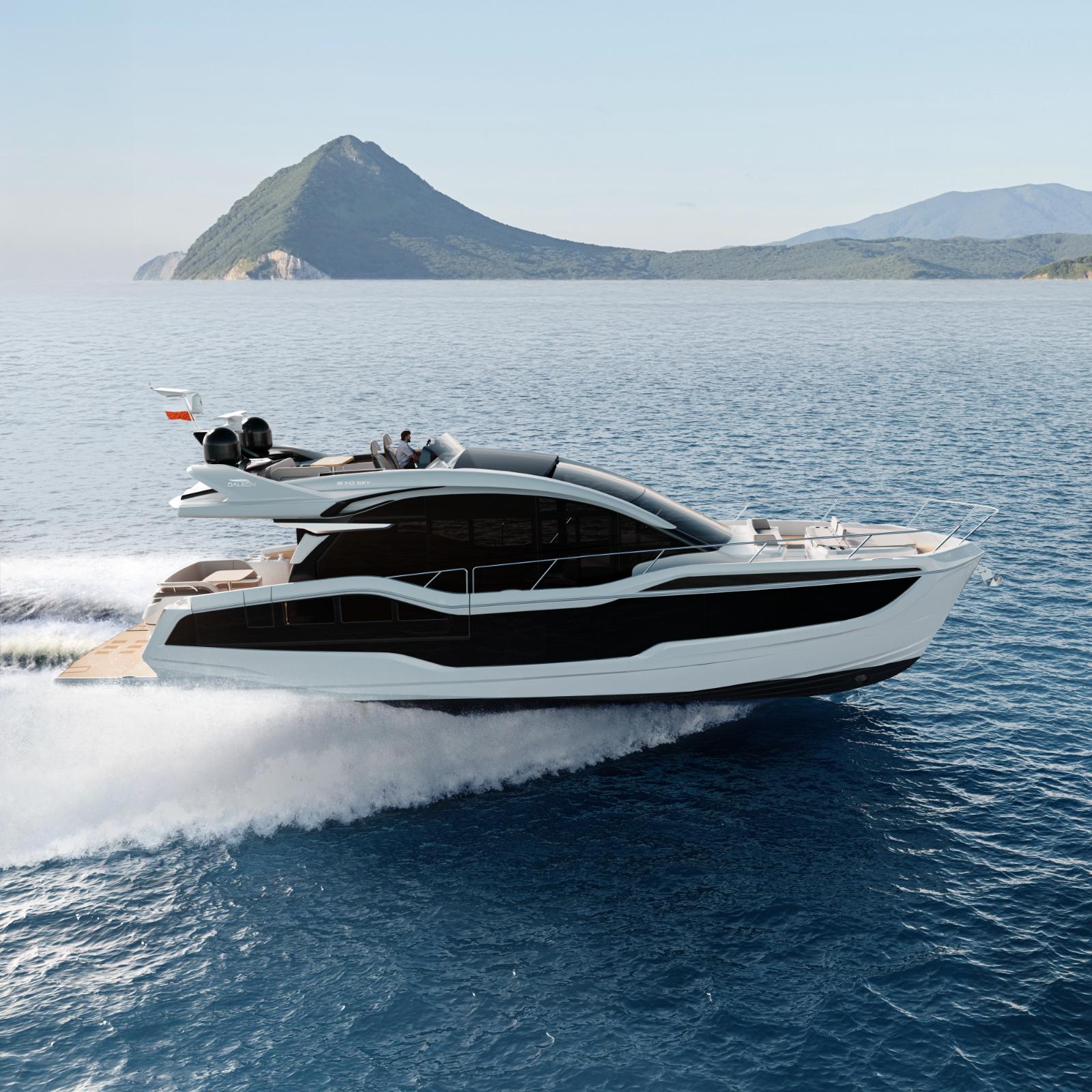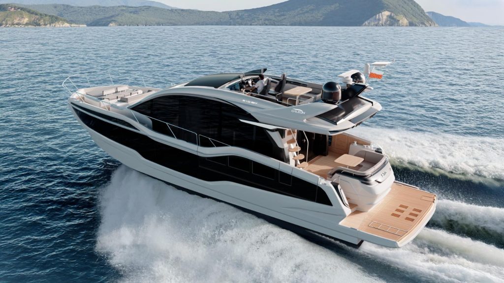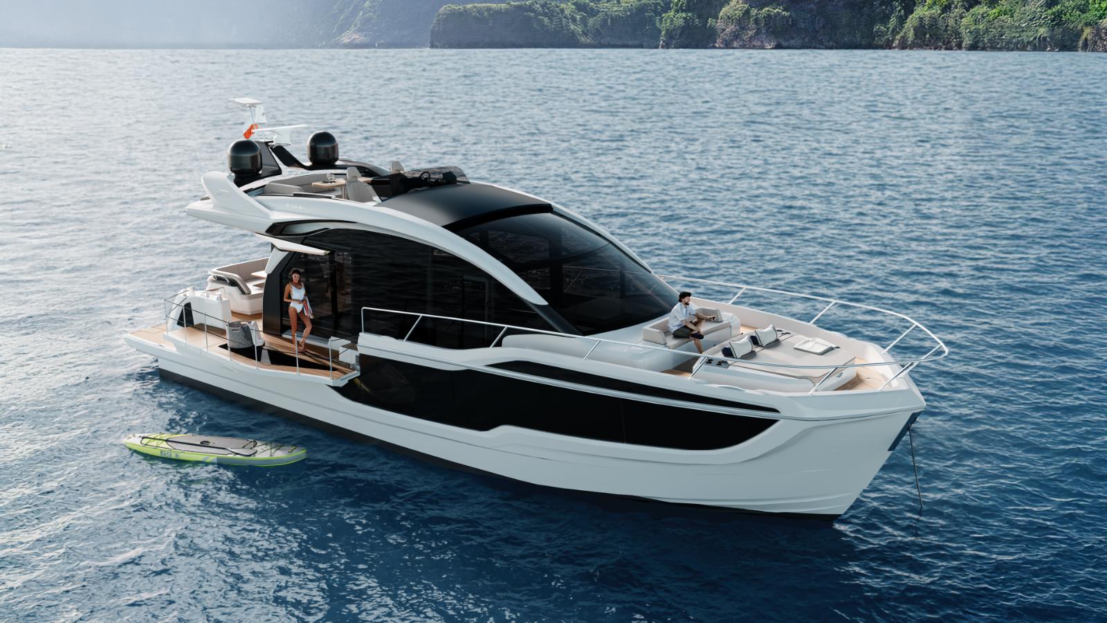 Conoce el nuevo Galeon 570 Sky, una incorporación revolucionaria a la reconocida línea Skydeck que combina la silueta deportiva de un hardtop con la funcionalidad completa de un flybridge.