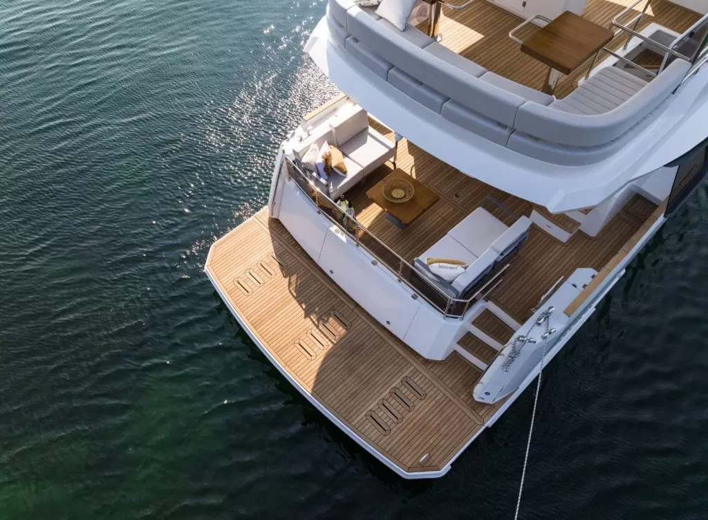 El diseño del casco crea el mismo lujo, con velocidades disponibles que ofrecen un emocionante crucero hacia una cala apartada para explorar y nadar, y un regreso rápido al puerto, mientras que un crucero lento eficiente hace que los viajes más largos por aguas azules sean un descanso de las preocupaciones cotidianas.